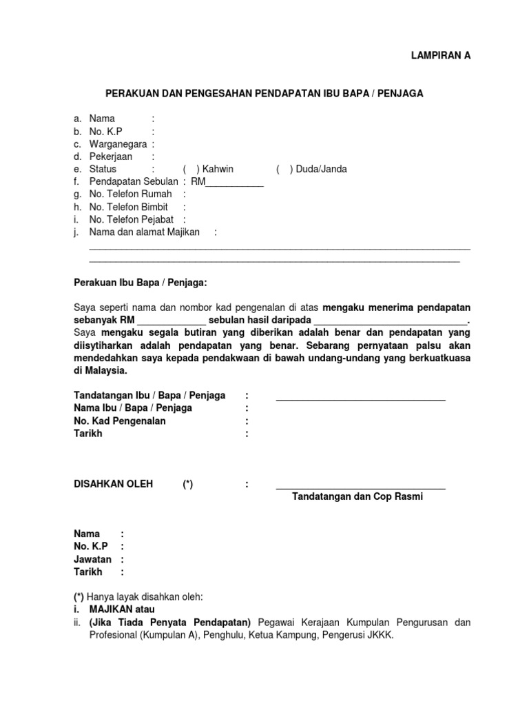 Dengan ini mengesahkan bahawa saya ( bekerja sendiri / tidak bekerja ) sebagai.dengan pendapatan sebanyak rm …. Diperbuat dan dengan sebenar benarnya diakui oleh yang tersebut namanya di atas iaitu. Peraturan pemerintah nomor 34 tahun 2012 tentang dana desa yang bersumber dari anggaran pendapatan dan belanja negara. Di dalam pembuatan contoh surat pernyataan orang tua haruslah memperhatikan tentang gaya bahasa serta diksi yang akan anda tuangkan di karena surat pernyataan orang tua termasuk ke dalam salah satu surat resmi yang harus anda patuhi dan pahami tentang beberapa ketentuan dalam. Untuk dilengkapkan oleh penjaga yang tidak mempunya penyata gaji / penyata pencen) saya. 15 contoh surat pengesahan pendapatan ibu dan bapak. Contoh surat akuan pendapatan dibawah boleh dijadikan rujukan untuk meraka yang berkerja sendiri,pengesahan pendapatan ibu bapa yang tidak bekerja,pengesahan pendapatan ibu bapa untuk memohon ptptn,mara dan sebagainya,akuan penyata pendapatan. Sesiapa yang berkenaan tuan/puan, surat pengakuan pendapatan bagi ibu bapa / penjaga yang tiada penyata gaji dengan segala hormatnya saya merujuk perkara di atas. Ada banyak contoh surat undangan pengajian yang sering dipergunakan. Contoh surat akuan pendapatan sendiri surat akuan pengesahan pendapatan adalah khusus buat individu yang bekerja sendiri dan tidak mempunyai slip gaji. Surat akuan pengesahan pendapatan ini adalah sebagai pengesahan pendapatan pemohon daripada daripada orang tertentu. Home current explore explore all. Untuk lebih jelasnya, berikut kami cantumkan beberapa contoh surat kuasa pengambilan uang di.