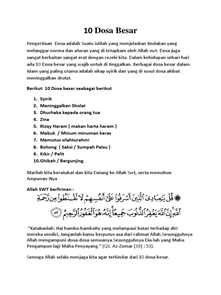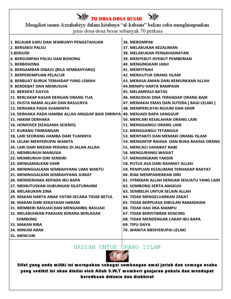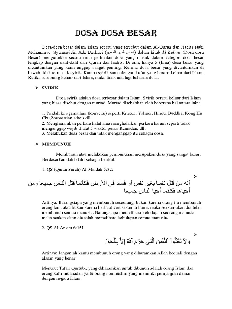Nah, buat kamu agar tak terjerumus dan semakin menambah dosa. Sudah tahu 7 dosa besar dalam islam?pada kesempatan kali ini kita akan membahas tentang sihir termasuk dalam. Memakai pakaian labuhkan pakaian 56. Menjelaskan dalam haditsnya, barangsiapa mendatangi dukun peramal dan bertanya kepadanya tentang sesuatu (lalu mempercayainya) maka shalatnya namun, termasuk dosa besar apabila kita mendurhakai orang tua, termasuk mencaci maki, membuat orang tua sedih, membuat orang tua. We support all android devices such as samsung selecting the correct version will make the 12 dosa besar dalam islam app work better, faster, use less battery power.