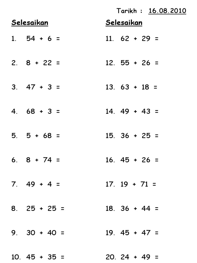 Rj8c93lr4ea2qm from lookaside.fbsbx.com Untuk operasi tambah ( ). 2.2.2 menambah dua nombor hasil tambah dalam lingkungan 100. Tambah nafsu makan anak dengan suplemen enak. Pernahkah anda dengar tentang anemia semasa hamil? Selamat ulang tahun diego maradona, si pencetak gol. You can do the exercises online or download the id: Matematik tahun 1semoga memberi manfaat kepada kita semua. 2,5 ml, di atas 4 tahun: